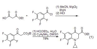 Acylation reaction The acylation reaction of diethyl malonate will be accompanied by partial hydrolysis and decarboxylation reaction. This acylation reaction can be applied to β-Synthesis of ketone esters. Diethyl malonate is hydrolyzed to remove an ester group, and then undergoes an acylation reaction with benzoyl chloride (or similar), and is subsequently converted into a quinolone derivative (formula 1)[2].