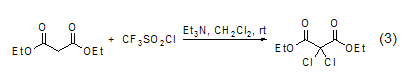 In addition, diethyl malonate The methylene group of the ester can also undergo a chlorination reaction (Formula 3)[7].