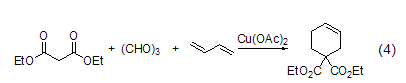 Combination reaction. For example, under the catalysis of copper (II), trimerformaldehyde and diethyl malonate undergo cyclization to form a six-membered ring compound (formula 4)[8].