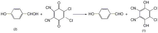 In reaction Add 496 mg (4 mmol) of p-hydroxybenzyl alcohol (2) and 24 mL of dioxane into the bottle, and then add 908 mg of 2,3-dichloro-4,5-dicyano-1,4-benzoquinone (DDQ) ( 4mmol), the reaction occurs immediately, producing dark green color (exothermic reaction), and DDQH2 precipitate is formed in about 1 min. Thin layer analysis showed that the reaction ended after 15 minutes. The solvent was evaporated under reduced pressure from the yellow reaction mixture, dichloromethane was added to the residue, and the insoluble matter (DDQH2, almost quantitative) was filtered off. The filtrate was concentrated to obtain compound (1) with a yield of 74%. Can be recrystallized from water. [1]