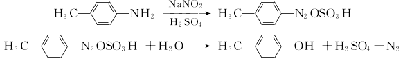 P-toluidine and sulfuric acid produce p-toluidine sulfate, which is diazotized with sodium nitrite at 0 to 5°C. The diazonium salt is then heated and hydrolyzed in dilute sulfuric acid, and the oil is separated with steam. Separate the oil layer and add it to 1% sodium hydroxide, then decolorize and filter, add concentrated sulfuric acid to pH=1, then separate the water layer, add zinc powder and sulfuric acid, neutralize with sodium carbonate until neutral, and separate. The oily substance is washed with water and then distilled under reduced pressure to obtain the finished product.