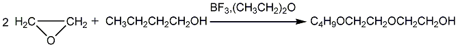 1. First add butanol and boron trifluoride ether solution into the reactor, heat to 75-80°C, introduce ethylene oxide, and continue to react at 75-80°C for 2-3 hours after adding ethylene oxide. . After the reaction is completed, neutralize it with 5% sodium butoxide to pH 8 and send it to the distillation tower for distillation. The low boiling materials are butanol and ethylene glycol monobutyl ether, and the high boiling materials are diethylene glycol monobutyl ether. For crude ether, continue distillation and collect the fraction at 230.5~231.5°C under normal pressure as the finished product.