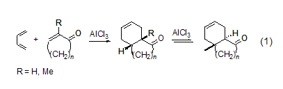 3. Butadiene is a reagent widely used in organic synthesis. It is a synthetic intermediate and Diels-Alder reaction for elastic polymers, polybutadiene, polychloroprene and nylon. diene reagents in . It is mainly used in the synthesis of six-membered carbocyclic and heterocyclic compounds in organic synthesis [1]. Lewis acid, such as: AlCl3, SnCl4, BF3, FeCl3 or TiCl4 , which is beneficial to the cycloaddition reaction of 1,3-butadiene and α, β-unsaturated carbonyl compounds. Under the action of AlCl3, cycloenone (n =2,3,4) undergoes cycloaddition reaction with butadiene to generate the expected cis adduct (Formula 1)[2]. When R = H, the cis adduct is partially or completely isomerized into the more stable trans isomer.