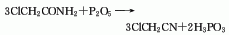 It is obtained by reacting chloroacetic acid with ethanol to generate ethyl chloroacetate, which is then reacted with ammonia water to generate chloroacetamide, and finally dehydrated: Add chloroacetic acid to ethanol, add concentrated sulfuric acid under stirring, heat to reflux, stop stirring, and react 8-10h, filter and wash with water, separate the water layer, and obtain ethyl chloroacetate. Add it to 0-2°C ammonia water, the temperature should not exceed 15°C, stir for 10-15 minutes after the addition, cool, let stand, filter, and dry to obtain chloroacetamide. Then, add phosphorus pentoxide to chloroacetamide, heat and dehydrate, steam out chloroacetonitrile while heating, and finally distill under reduced pressure to steam out all chloroacetonitrile. The obtained crude product is dried with phosphorus pentoxide and magnesium oxide, and fractionated under reduced pressure to obtain the finished product.
