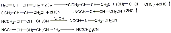 <strong�This process is similar to the hydrogenation of adiponitrile. Butadiene method (1) Cyanide chloride method: 1,3-butadiene and chlorine gas are chlorinated in a chlorination reactor at 200-250°C to generate 1,4-dichloro-2-butene (accounting for 66%) and 3,4-dichloro-1-butene (accounting for 33%). Dichlorobutene compound undergoes an isomerization reaction in the presence of calcium carbonate at 100-150°C with sodium hydroxide or ammonium as a catalyst at 50-100°C to generate 1,4-dicyano-1 -Butene. 1,4-dicyano-1-butene uses palladium as a catalyst and performs gas phase hydrogenation under normal pressure and 250°C to prepare ethanedinitrile. Ethylenediamine is obtained by catalytic hydrogenation of ethylene dinitrile.