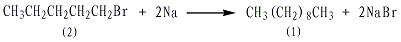 Use 23g (1.0mol) sodium metal and 75.5g (62mL, 0.5mol) 1-bromopentane (2) or 99g (65.5mL, 0.5mol) 1 – Iodopentane According to the above operation method for preparing n-octane, collect the fraction between 171 and 174°C to obtain about 28g of n-decane (1), with a yield of 79%. [28]