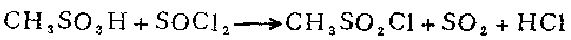 2. In 1 liter three neck Equip the bottle with a mechanical stirrer, reflux condenser, thermometer and separatory funnel, and place it in a fume hood. The bottle is filled with 152 grams (105 ml, 1.5 mol) of methanesulfonic acid. Heat to 95°C on a steam bath, and add 238 grams (146 ml, 2.0 mol) of thionite chloride dropwise within 4 hours. Maintain 95°C during the entire feeding process, and the reaction will be completed after 3.5 hours. Transfer the product into a distillation flask and install a Kirschner distillation head with a fractionating column. Heat in an oil bath (the bath temperature at the end of distillation does not exceed 115°C) and perform distillation under reduced pressure. First, evaporate thionyl chloride in Baowen.