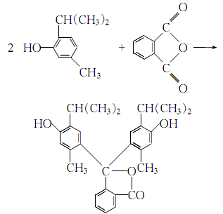 1. Mix thymol, phthalic anhydride and anhydrous zinc chloride and heat. Add diethyl ether and benzene. Heat to reflux on a water bath, pour off the upper solvent, add methanol to the solid, and heat. Extract the remaining solid matter with methanol, add water dropwise to precipitate, and cool to obtain pure thymol phthalein.