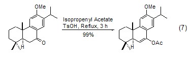 Isopropylene Acetate Another A less important reaction is the conversion of the carbonyl group to enol acetate. If both sides of the carbonyl group have the possibility of forming an enol structure, isomers are often produced. Generally, this reaction is carried out under the action of an acidic catalyst, and a variety of acidic catalysts can be used for this purpose, such as: H2SO4, TsOH, etc. (Formula 7 )[10,11].