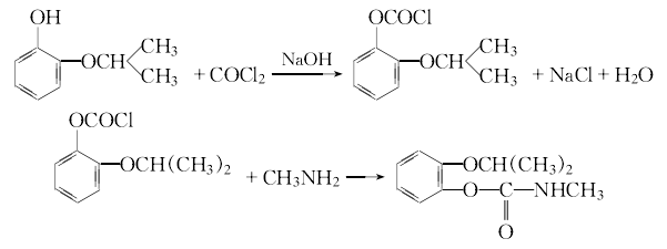 Synthesize isopropoxy first Phenolic chloroformate is then aminated to synthesize propoxur. Both reactions are carried out at low temperatures.