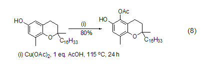 Copper acetate can also oxidize hydrocarbons C-H bonds of the substrate. For example, the ortho-hydroxylation reaction of phenol can be catalyzed by copper acetate in the presence of oxygen and morpholine. When oxygen is isolated, quantitative copper acetate can realize the ortho-acetation reaction of phenol in the presence of acetic acid (Equation 8)[5].