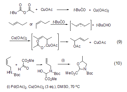 Allyl oxidation reactions, such as N-Boc-allylamine intramolecular cyclization reaction (Formula 10), can also be achieved under the combined action of catalytic amounts of palladium acetate and excess copper acetate. [7].