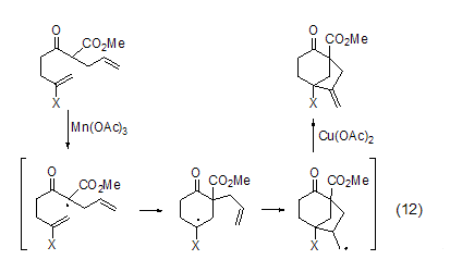 Use in combination with free radical initiator , Copper acetate can also participate in the oxidation reaction of free radicals. For example, β-carbonyl ester obtains free radicals under the oxidation of Mn(OAc)3, and then undergoes intramolecular cyclization to obtain alkyl radicals, which are then oxidized under the action of copper acetate. Oxidation to the corresponding alkene (Formula 12)[9].