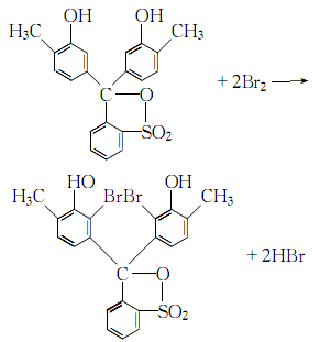 2.Dissolve the reagents cresyl red and bromine in acetic acid respectively to make a solution, then add the bromine acetic acid solution under stirring. Cresol red in acetic acid solution: