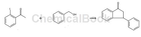 Indenone compounds are often produced from phenylpropionic acid and its derivatives as raw materials and are catalyzed by various strong acids for ring closure, such as chlorosulfonic acid, trifluoromethanesulfonic acid, trifluoroacetic acid, polyphosphoric acid, etc. The environment is polluted, the reaction conditions are harsh, and there is a lack of stable and reliable synthesis methods with a wide range of substrates and mild conditions. In recent years, great progress has been made in the synthesis of benzyl-substituted derivatives of the indene ring catalyzed by transition metals from α,β-unsaturated carbonyl compounds. 3-Phenyl-1-indanone can be used as a pharmaceutical synthesis intermediate.