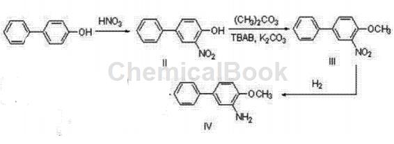 5-Phenyl-o-anisidine, also called 3-amino-4-methoxybiphenyl, can be prepared from p-hydroxybiphenyl through a three-step reaction.