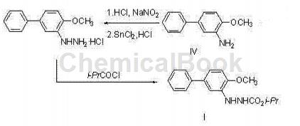 Can be used to prepare biphenyl hydrazine ester, as shown in the picture above. The chemical name of bifenazate is N’-(4-methoxybiphenyl-3-)hydrazinecarboxylic acid isopropyl ester, which is a new type of hydrazine ester compound. It is a specific acaricide that is active during the active phase of spider mites and can also control the egg stage of pests such as two-spotted spider mites. Used on cotton, hops and some fruit trees to effectively control mites at all growth stages. This drug can provide rapid killing and long-residue selective control effects (harmless to beneficial mites and beneficial insects). It has been registered for use in various states in the United States, and is currently not produced in China.