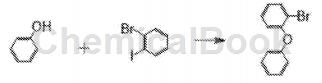 Take 0.1 mol of phenol, dissolve it in 100 mL of anhydrous tetrahydrofuran, stir, accurately weigh 0.4 mol of sodium hydride and add it to the reaction bottle in batches, not too fast to prevent too many bubbles from being generated. After the addition, the solution will turn yellow , then add 0.11 mol of 1-bromo-2-iodobenzene (added in batches) and react at room temperature overnight; filter the reaction product to remove the solid matter, spin the filtrate to dryness, add dichloromethane to dissolve, and pass through the column with petroleum ether: acetic acid Ethyl ester = 1:5 (volume ratio) was washed through the column to obtain 1-bromo-2-phenoxybenzene (intermediate A-1) (0.05 mol, y = 50%). Mass spectrum: 249.97.