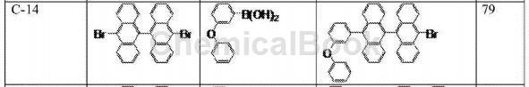 As shown in the table below, 3-phenoxyphenylboronic acid can be used as a reactant in a coupling reaction with a halogenated aromatic hydrocarbon to produce the intermediate C14, C14 bromine, which can be further made into boric acid, and then coupled to prepare a luminescent substrate.