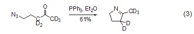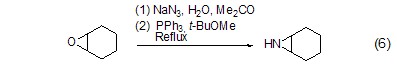 With organic epoxy Reaction of compoundsRefluxing in water and acetone solvents, triphenylphosphine can convert epoxy compounds into cyclic imines with the participation of sodium azide (Formula 6)[6] .