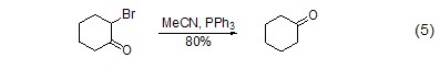 Dehalogenation reaction α-Bromoketone reacts with triphenylphosphine to form ketone (Formula 5)[5].
