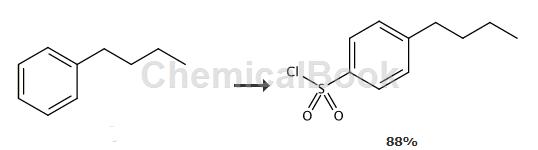 To a solution of butylbenzene (4.13g, 30.8mmol) in CHCl3 (50mL) was added chlorosulfonic acid (17mL, 29.8g, 256mmol) and the mixture was stirred at room temperature for 20 hours . The mixture was poured onto ice (200 mL) and extracted with EtOAc (3 x 100 mL). The combined extracts were washed with water, NaHCO3 solution and water, dried (Na2SO4), and concentrated in vacuo. The yellow oily residue (yield 88%) was used in the next step without further purification. 1H NMR (300MHz, CDCl3) δ0.94 (t, 3H, J = 7Hz), 1.34-1.41 (m, 2H), 1.62-1.67 (m , 2H), 2.73 (t, 2H, J = 8Hz), 7.41 (d, 2H, J = 8Hz), 7.94 (d, 2H, J = 8Hz).