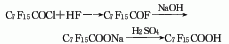 2. Put the raw materials octanoyl chloride (purity 99.5%), hydrogen fluoride and a small amount of n-butyl sulfuric acid into the electrolytic cell, energize at 20~25℃ (voltage 5~8), electrolysisThe product is neutralized with alkali, acidified with acid, and distilled to obtain perfluorooctanoic acid.