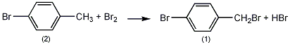 Pre-installed thermometer, reflux condenser (with calcium chloride on top In the reaction bottle of the drying tube (the drying tube is connected to the hydrogen bromide absorption device) and the dropping funnel, add 140g (0.83mol) of p-bromotoluene (2) and 3mL of PCl, heat to about 120°C with stirring, and slowly add bromine dropwise. 128g (0.8mol), control the temperature of the reaction solution between 115 and 125°C, and complete the addition in about 3 hours. After the addition was completed, the reaction was continued to stir for 0.5 h. Let cool to below 10°C and leave overnight. Decant off the uncrystallized liquid. Melt the crystals, place at 20°C overnight, and then pour off the uncrystallized liquid. Distill under reduced pressure and collect the fraction at 120~125℃/1.3kPa to obtain 89g of p-bromobenzyl bromide (1), with a yield of 45%. [1]