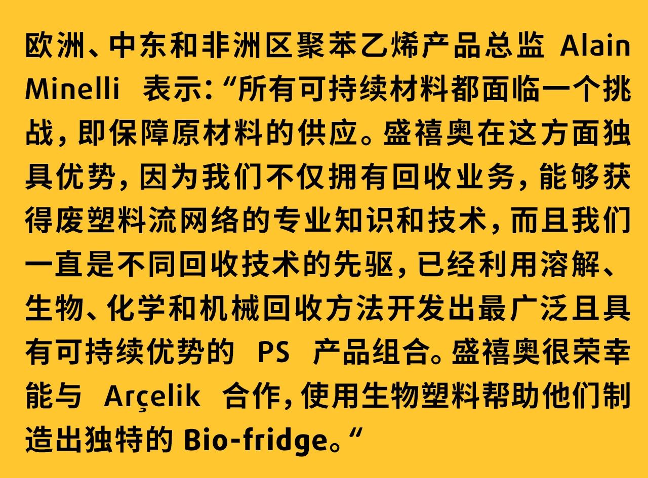 Arçelik is one of the first companies to use bio-based PS materials, supplied by Trinseo, to build high-end refrigerators. Refrigerator liners and drawers are made of Trinseo BIO PS