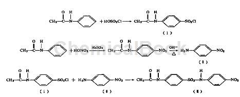 Add 20ml of glacial acetic acid and 3.0g of p-nitroaniline (0.022m01) into a 150ml dry round-bottomed flask. When the temperature reaches 120°C, add 6.3g of acetaminophenyl chloride (0.027mol), reflux and add in portions. Anhydrous sodium acetate 2.3g (0.027mol]), react for 1 hour, add 50ml of water, stir, cool, suction filter, wash the crystals with 60% acetic acid, 5mol/L hydrochloric acid, and water, and dry to obtain sulfonamide [1] yellow powder , recrystallized with ethanol to obtain 3.5g of light yellow powder. Yield 47.9%.