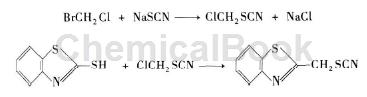 Based on the first method of synthesizing benzothiocyanide, bromochloromethane and sodium thiocyanide are first substituted to generate chloromethyl thiocyanate, and then the thiocyanate is Methyl chloride reacts with 2-mercaptobenzothiazole to form benzothiocyanine (benzothiocyanine). The reaction route is as follows: