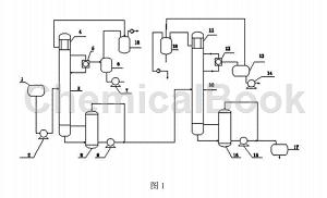 As shown in Figure 1, 1. Storage tank; 2. Pump; 3. Stripping tower; 4. Condenser; 5. Reflux ratio controller; 6. Storage tank; 7. Pump; 8. Reboiler ; 9. Pump; 10. Product tower pump; 11. Condenser; 12. Reflux ratio controller; 13. Storage tank; 14. Pump; 15. Pump; 16. Reboiler; 17. Pump; 18. Vacuum tank .