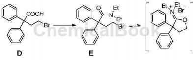 After the action of benzene acetonitrile and sodium amide, ethylene oxide is introduced for reaction, and 36% hydrogen bromide in glacial acetic acid solution is added to the resulting compound to obtain 4-bromo-2,2-diphenyl Butyric acid.