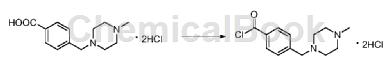 Put 1g of imacic acid (5g, 0.021mol, Anaiji Chemical) into a 100mL three-necked flask, add sulfonyl chloride (35mL) and catalyst N,N-dimethylformamide (0.3mL), and heat to reflux React for 22 hours, lower to room temperature, filter with suction, wash with n-hexane (10mL×2), and vacuum dry at 45-50°C for 2 hours to obtain white solid 4-(4-methylpiperazinemethyl)benzoyl chloride. Hydrochloride (1h) 5.1g, yield 95%.