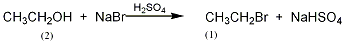 Add 100mL (1.7mol) of 95% ethanol (2) and 90mL of water into the reaction bottle. Slowly add 190mL of concentrated sulfuric acid while stirring continuously. The reaction is exothermic. Be sure to cool to room temperature. Slowly add 163g (1.5mL) of finely ground sodium bromide and a few grains of zeolite while stirring. Install the distillation device and add an appropriate amount of � to the receiving bottle.of water and place it in an ice bath. Heat slowly to allow the reaction and distillation to proceed smoothly until no oil is distilled out. The organic layer was separated and dried with sulfuric acid. Distill and collect the fractions at 35-40°C to obtain 100-120g of bromoethane (1) with a yield of 61%-74%. [28]