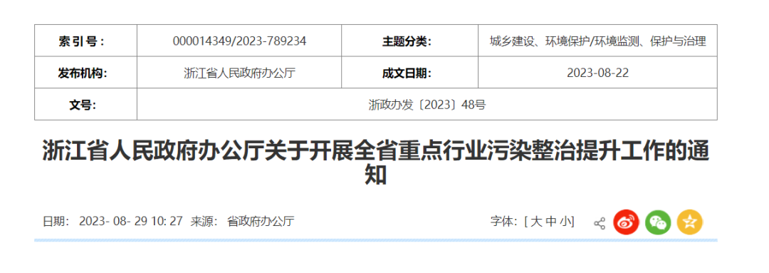 In addition, the “Notice” clarifies that the pollution control and improvement work in key industries will be included in the assessment of the construction of a beautiful Zhejiang and the index evaluation of the Provincial Party Committee’s “Seven Issues List” of major ecological and environmental protection inspection issues. Selected environmental protection “leading” enterprises can be given priority support in the supply of energy, land, emission rights and other factors. If the rectification work is not implemented, the problem rectification is not thorough, and the major pollution risks are not effectively eliminated, an early warning will be notified, listed for supervision, points will be deducted in the assessment, or included in the provincial party committee’s ecological and environmental protection inspection as a typical negative case.