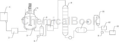 The fractionation device includes a rectification tower 9 and a condenser 10. The feed port of the rectification tower 9 is connected to the outlet of the crude product tank 7. The outlet of the rectification tower 9 is connected to the outlet of the condenser 10 through a conveying pipe. The feed port is connected; the purification device includes a crystallizer 11, a fine product tank 12 and a receiving tank 13. The feed port of the crystallizer 11 is connected to the outlet of the condenser 10, and the outlet of the crystallizer 11 is connected to the outlet of the condenser 10. The feed port of the fine product tank 12 is connected, and the bottom end of the fine product tank 12 is provided with two discharge ports, one of which is connected to the receiving tank 13, and the other discharge port is connected to the waste gas absorption device 8;