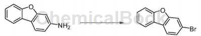 Sodium nitrite (4.4g, 65mmol) was dissolved in 40ml of concentrated sulfuric acid at ℃, and 3-aminodibenzofuran (10.6g, 58mmol) was dissolved in a small amount of glacial acetic acid and slowly dripped into the reaction solution, keeping The temperature is lower than 5°C. After the dropwise addition, keep it at 0°C and continue stirring for 2 hours. Add 200ml of ether to the reaction solution and stir. Diazonium salt will precipitate. Filter to obtain a brown solid; add CuBr (12.5g) to another reaction bottle. , 87mmol), 300ml 48% HBr, finally add the obtained brown diazonium salt, heat to 66°C for 2 hours, cool to room temperature, filter, wash the filter cake with water twice, and use petroleum ether: dichloromethane to obtain the solid =10:1 eluent was passed through the column to obtain 9.6 g of solid.