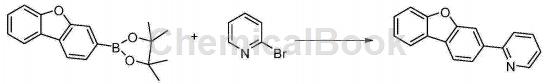 Dibenzofuran pinacol borate (11.8g, 40mmol), 2-bromopyridine (5.8ml, 60mmol), sodium carbonate (10.2g, 96mmol), tetrakis(triphenylphosphine)palladium (0.5 g, 0.4 mmol), 50 ml each of toluene, ethanol, and water were added to the reaction bottle in sequence, and the reaction was refluxed under nitrogen protection for 10 hours. Cool to room temperature, separate the liquids, extract the aqueous layer with EA, combine the organic layers, and use saturated saline and saturated saline respectively. Wash with water, dry the organic layer over magnesium sulfate, filter, spin the filtrate to dryness, and pass through a silica gel column. The eluent ratio is petroleum ether: ethyl acetate = 20:1 to obtain 8.7g of product, with HPLC purity of 99.0%.