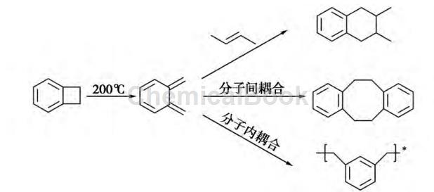 Benzocyclobutene (BCB) monomer has the thermodynamic stability of aromatic compounds and the kinetic reactivity of strained rings1 ]. After heating to 200°C, the four-membered ring opens and forms a highly reactive polymerizable intermediate. This polymerizable intermediate can not only undergo Diels-Alder addition reaction with dienophilic monomers, but also react with each other to form polymers[2] . As a new type of reactive resin, benzocyclobutene resin can form both thermoplastic resin and thermosetting resin[3], It has excellent thermal stability, molding processability, low dielectric constant (K), low water absorption and low thermal expansion coefficient. Based on these excellent properties, benzocyclobutene resin has been widely used in electronics, microelectronics industry and other fields [4-5], Specific applications include enameled wire varnish, wafer-level packaging materials, liquid crystal displays, interlayer dielectrics in semiconductor packaging, very large-scale integrated circuits and fiber-reinforced composite materials. Benzocyclobutene resin has become a current research hotspot in the field of dielectric materials.