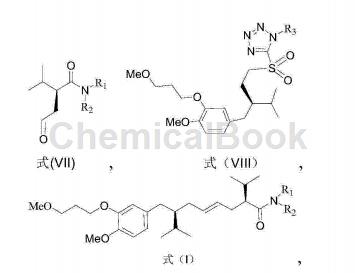 1) React a compound with a structure of formula (VII) and a compound with a structure of formula (VIII) to obtain an aliskiren intermediate with a structure of formula (I);