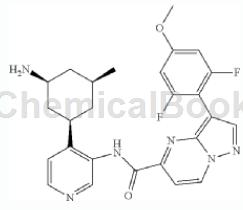 Use tert-butyl[(1S,3R,5S)-3-(3-{[(3-bromopyrazolo[1,5-a]pyrimidin-5-yl)carbonyl]amino}pyridine-4 -5-methylcyclohexylcarbamate and 2,6-difluoro-3-methoxyphenylboronic acid are used as raw materials.