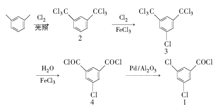 4) Synthesis of 3,5-dichlorobenzoyl chloride (1) (decarbonylation reaction)