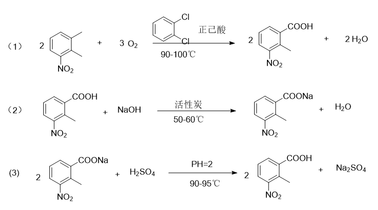 [2] [Chinese invention] CN201711183025.X A clean production method for oxidizing 3-nitro-o-xylene to 2-methyl-3-nitrobenzoic acid