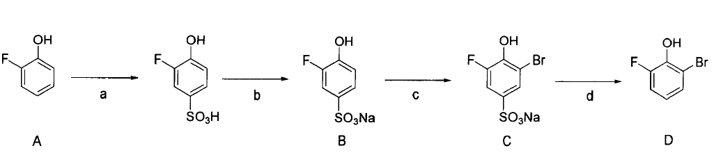 3) Synthesis of 2-fluoro-6-bromophenol (D) (step d, deprotection reaction):