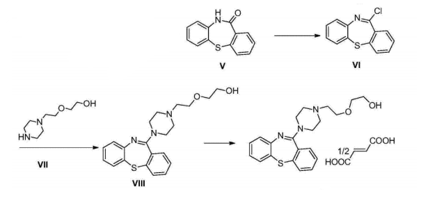 Dibenzo[b,f][1,4]thiazepin-11-[10H]one is a key intermediate in the preparation of quetiapine. Quetiapine, generally sold as the hemifumarate salt. It is an antipsychotic drug developed by AstraZeneca UKlimited (AstraZeneca Pharmaceutical Company). It was first launched in the UK in November 1997 and is used to treat schizophrenia. It has strong antipsychotic effects and causes fewer symptoms. Extrapyramidal syndrome.
