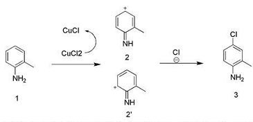 Chloroanilines containing substituents, such as monosubstituted 4-chloro-2-methylaniline, are widely used in medicine and pesticides. Since experiments on the para-position chlorination of substituted phenolic hydroxyl groups with copper chloride were carried out in the early 1970s, no one has systematically studied the chlorination of substituted anilines. However, the preparation of substituent-containing chloroanilines has always been relatively cumbersome in the industry. It is generally prepared by first protecting the amino group, then chlorination, separation, and finally deprotection; there are also methods by attaching amino groups or other functional groups to other substrates, but the preparation cost is high, the pollution is large, and the synthesis steps are long.