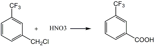 Method 1: A method for preparing m-trifluoromethylbenzoic acid, which uses m-trifluoromethylbenzyl chloride as raw material and oxidizes it with nitric acid with a concentration of 60-70% by weight at 100-110°C. Reaction, cooling and filtration, the m-trifluoromethylbenzoic acid product is obtained.