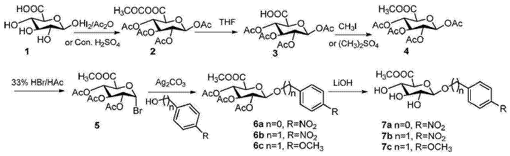 6) Preparation of p-nitrobenzyl-β-D-glucuronide (7a)