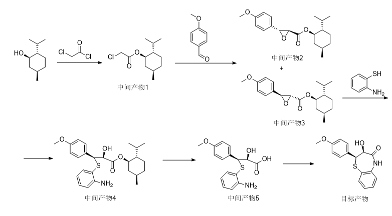 (2S-cis)-(+)-2,3-dihydro-3-hydroxy-2-(4-methoxyphenyl)-1,5-benzothiazepine-4(5H) -Ketone is a key intermediate in the synthesis of diltiazem. The current route to synthesize diltiazem is mainly to first synthesize (2S-cis)-(+)-2,3-dihydro-3-hydroxy-2-(4-methoxyphenyl)-1,5-benzothiazepine Zo-4(5H)-one is then obtained through a two-step reaction of N-alkylation and O-acetylation. The chemical name of diltiazem is cis-(+)-5-[(2-dimethylamino)ethyl]-2-(4-methoxyphenyl)-3-acetoxy-2,3- Dihydro-1,5-benzothiazepine-4-(5H)-one hydrochloride is a selective calcium channel blocker. Diltiazem is a benzodiazepine calcium antagonist. It was originally developed by the Japanese company Tanabe and was first launched in Japan in the early 1970s. Later, it was successively sold in the United States and Japan under the names of diltiazem, diltiazem, and siltiazem. , France, Spain and other countries.